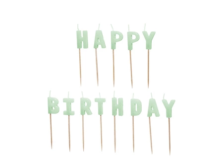 - Świeczki urodzinowe Happy Birthday w kolorze jasnozielonym, wysokość ok. 2.5 cm. (1 op. / 13 szt.)