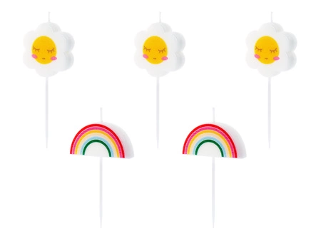 - Świeczki urodzinowe Stokrotki, mix kolorów, height approx. 2-3.5 cm. (1 op. / 5 szt.)