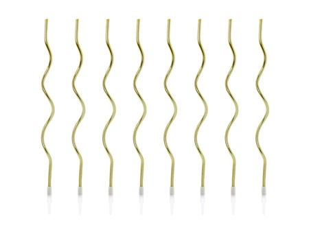 - Świeczki urodzinowe zakręcone, w kolorze złotym metalizowanym, wysokość ok. 14 cm. Zestaw zawiera 8 świeczek i podstawek. (1 op. / 8 szt.)