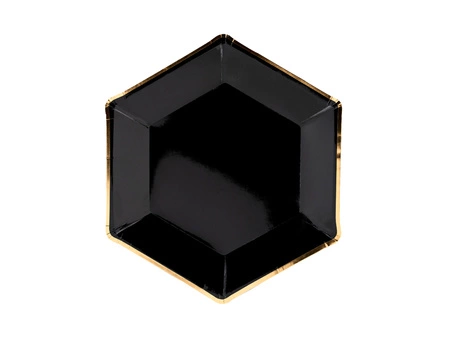 - Talerzyki papierowe Let's Celebrate w kolorze czarnym ze złotymi brzegami, średnica ok. 23 cm. (1 op. / 6 szt.)