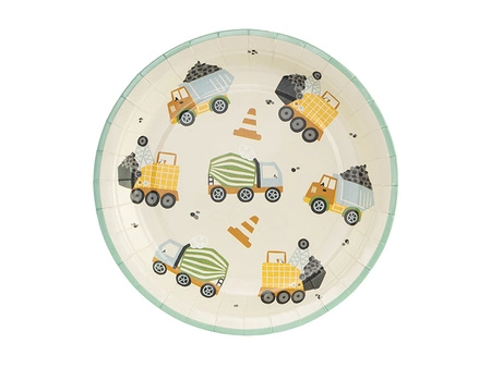 - Talerzyki papierowe Pojazdy budowlane, mix kolorów, wymiary ok. 18 x 18 cm. (1 op. / 6 szt.)