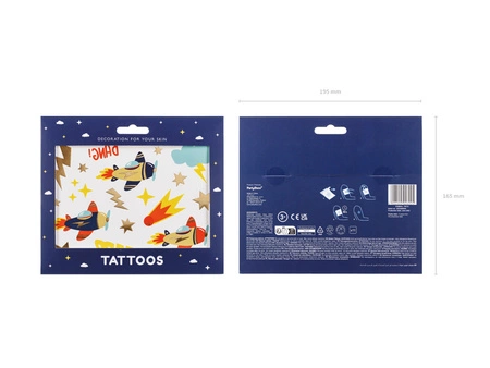 - Tatuaże zmywalne Samoloty, mix wzorów i kolorów, zestaw zawiera 11 różnych wzorów. (1 op. / 11 szt.)