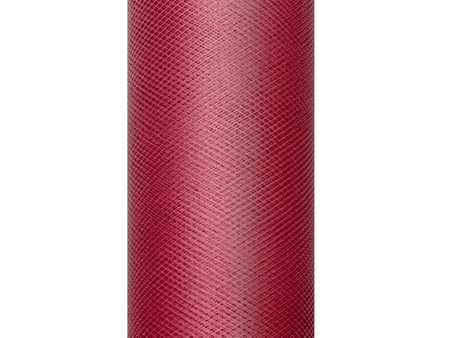 - Tiul gładki w kolorze bordowym, na szpulce, wymiary 0,3x9 metrów.