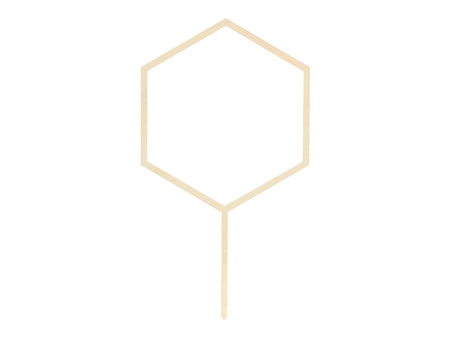 Topper wykonany jest z wysokiej jakości drewna, co czyni go nie tylko atrakcyjnym wizualnie, ale również przyjaznym dla środowiska. Naturalny kolor drewna świetnie komponuje się z wieloma stylami dekoracyjnymi, od rustykalnych po minimalistyczne. Dzięki starannemu wykonaniu i precyzyjnemu wycięciu heksagonalnego wzoru, topper prezentuje się bardzo elegancko. Przykładowo, możesz użyć go jako dekoracji na ekologicznych przyjęciach, gdzie liczy się dbałość o środowisko i wybór naturalnych materiałów.