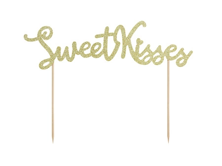 - Topper na tort Sweet Love - Sweet Kisses w kolorze złotym brokatowym, wysokość ok. 16,5 cm