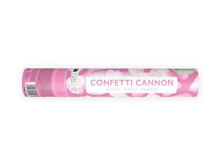 - Tuba strzelająca bibułowymi sercami w kolorze białym, długość 28 centymetrów.