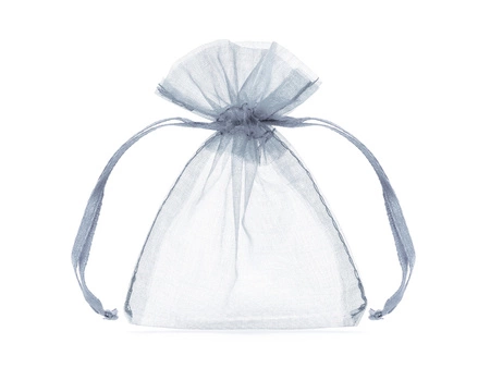 - Ściągane woreczki z gładkiej organzy w kolorze srebrnym, wymiary ok. 7.5 x 10 cm. Idealne dla gości weselnych. (1 op. / 10 szt.)