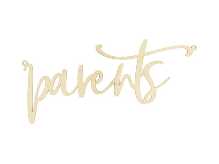 - Drewniana zawieszka na krzesło Parents, wymiary ok. 29.5 x 12.5 cm.